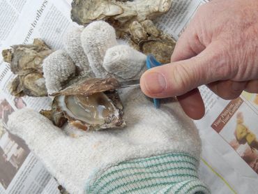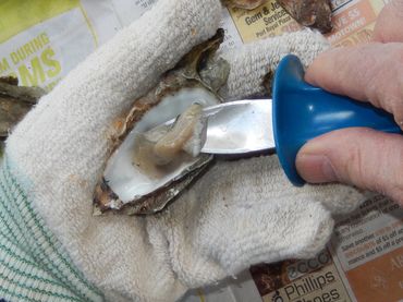 My grandson, at 5 years old, shows how easy it is to open an oyster with a Carolina Oyster Knife.